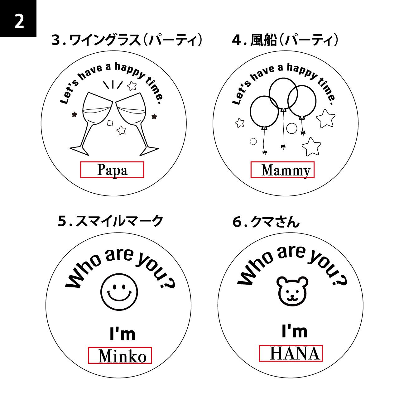 2)コースターに入れたいネームは 購入手続き下段の「備考欄」にご記入ください。