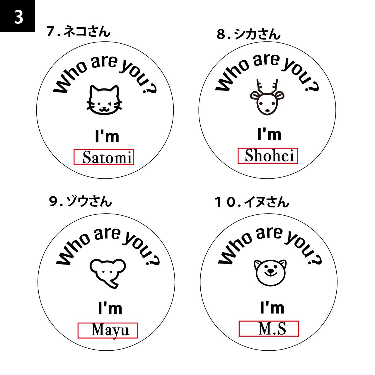 ネーム(アルファベット10文字以内)をご記入ください(合計3個)。