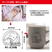 ●陶器製 似顔絵マグカップ2個(Aタイプ:200cc/Bタイプ:150cc)※AタイプとBタイプは形状が異なります。(写真参照)